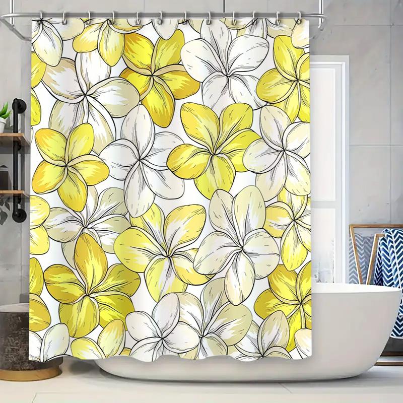Elegant Yellow Flowers Shower CurtainWaterproof Print Bathroom Decor for Home Use Modern Floral Design Bath Linen Set with Hook