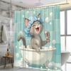 1pc Anthropomorphic Cat Shower Curtain - Singing in Bathtub, Retro Microphone Design, Polyester, Fashionable Bathroom Decor