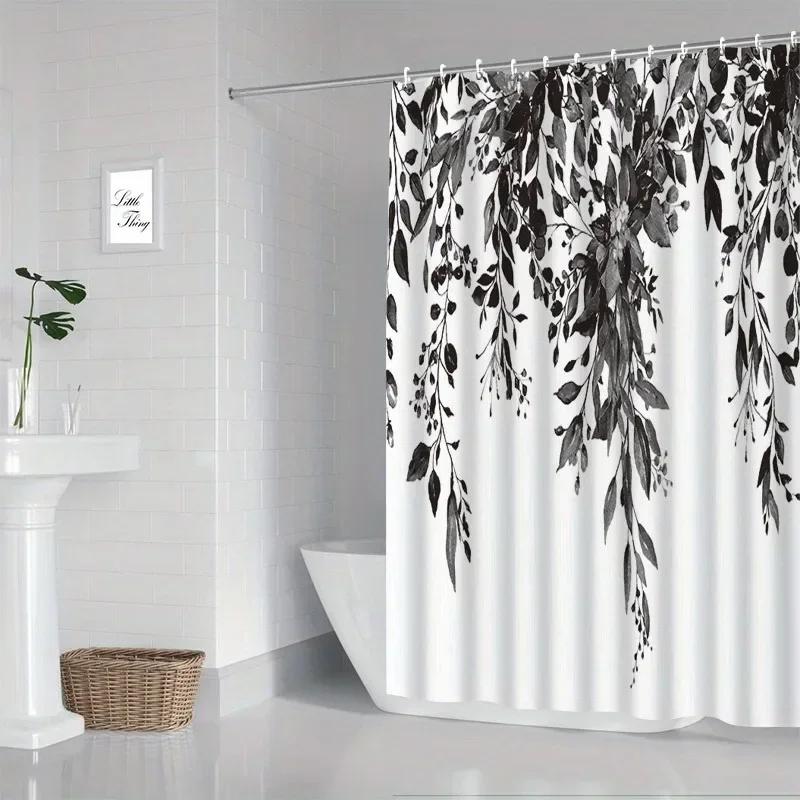 VIKAMA1 piece small fresh eucalyptus leaves digitally printed bathroom shower curtain set perforated strap hook easy to clean