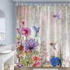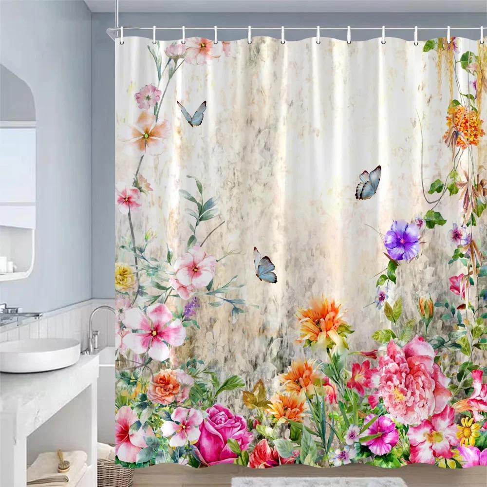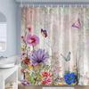 Butterfly Flowers Shower Curtains Pink Purple Blue Watercolour Floral Plants Vintage Art Modern Fabric Bathroom Decor with Hooks