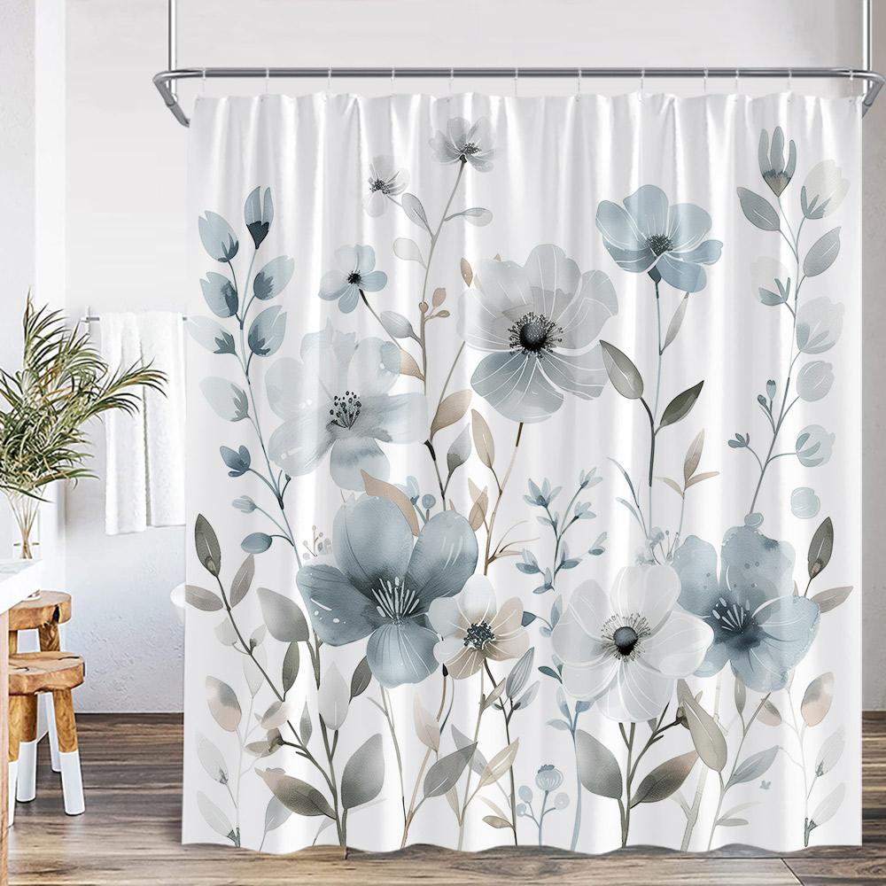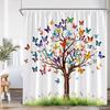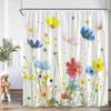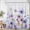 Watercolor Floral Shower Curtain Flower Plant Butterfly Purple Blue Golden Blossom Bathroom Decor ModernPolyester Bath Curtain