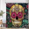 Happy Skull Shower Curtain Halloween Night Party Skull Bathroom Decoration Vintage Polyester Fabric Shower Curtain