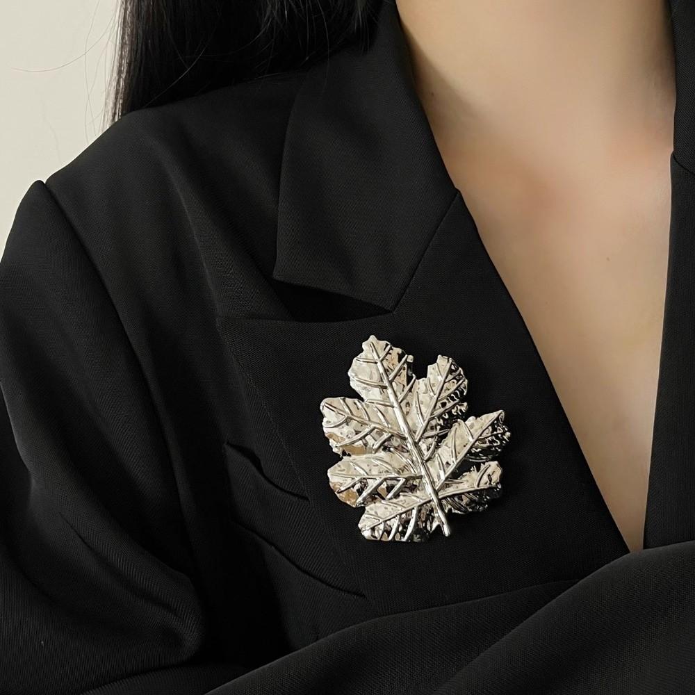 Vintage Long Leaf Pin Corsage Ornament Metal Glossy Brooch Maple Leaf Brooch Western-style Clothes