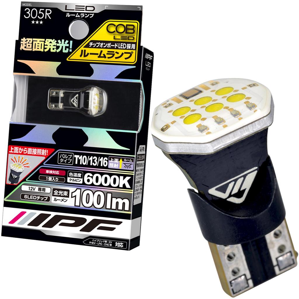 IPF LED Interior Lamp for T10 T13 6000K 305R Cars, T16, 100lm, White, 12V, 1pc, COB, Top-Surface Illumination,