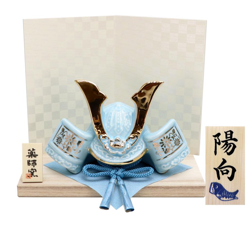 Osaka Choseido May Festival Compact Mini with Name Engraving and Wooden Plaque Helmet Dyed Painted Helmet for Success Doll, Ceramic, (Shipped