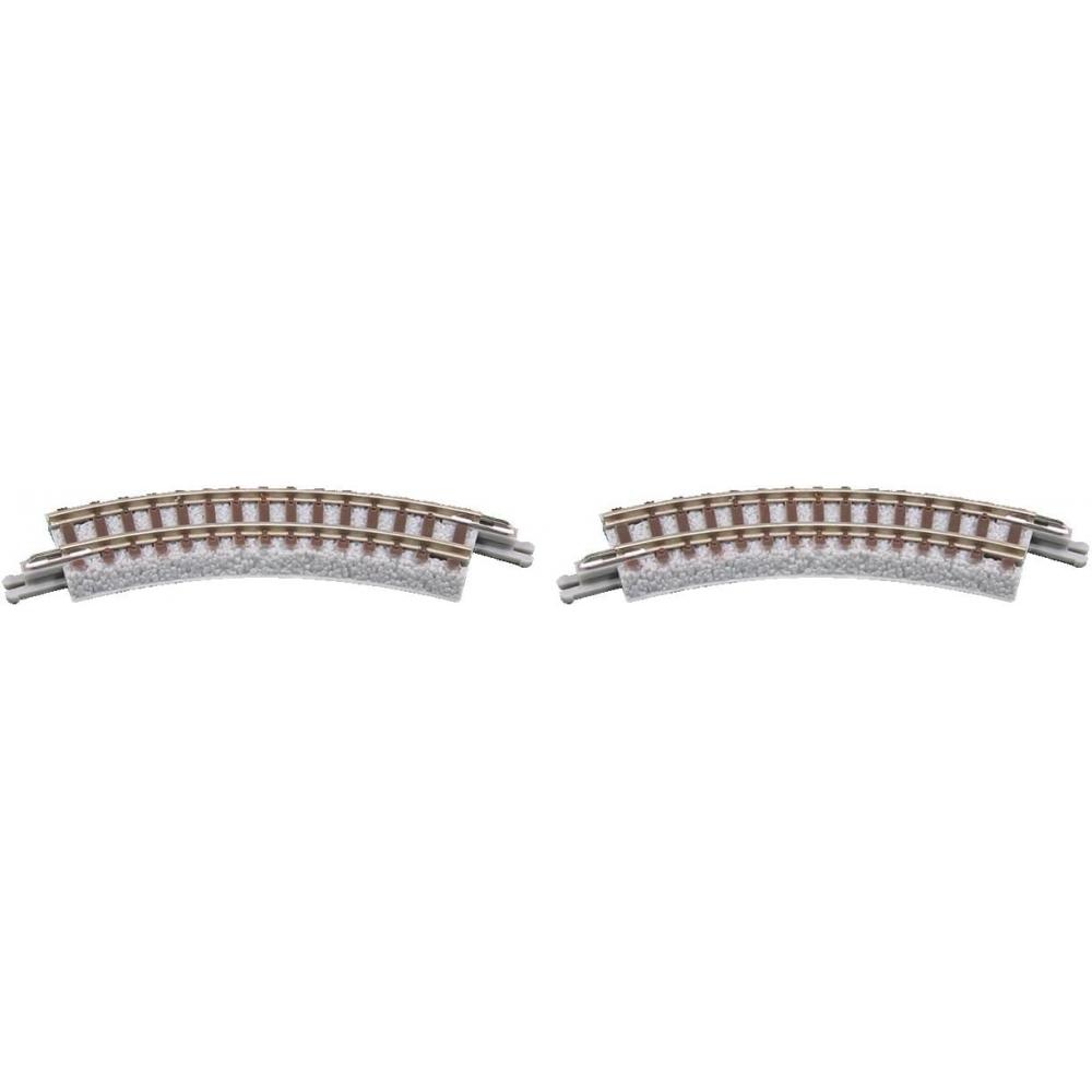 Rokuhan Z Gauge R018 Curved Rail is designed in a 45° curve shape. This product is in Z gauge scale and provides an optimal route for smooth train operation. It includes two rails, allowing for combinations to fit various layouts.