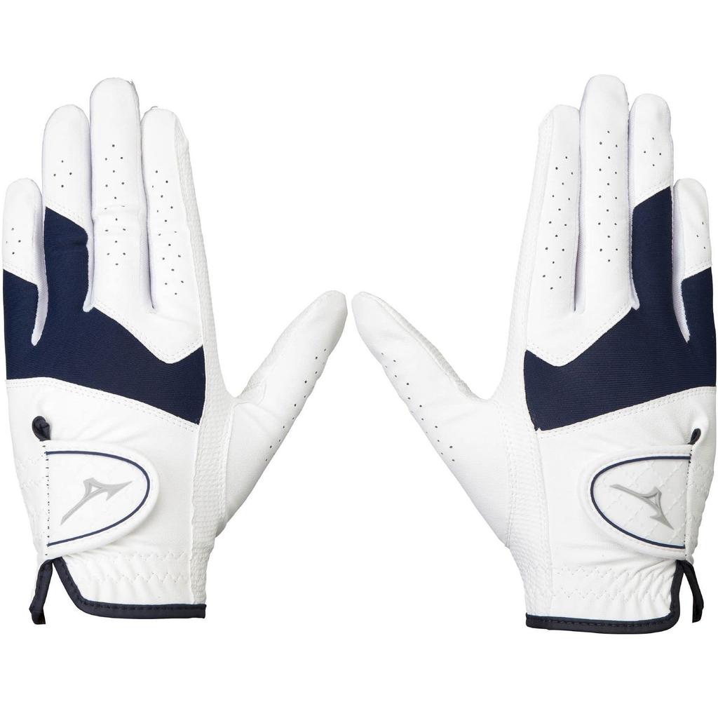 MIZUNO Golf Gloves Efil Synthetic 5MJWB254 Women's, Pair, Leather/Synthetic Leather, White/Navy, 19cm,