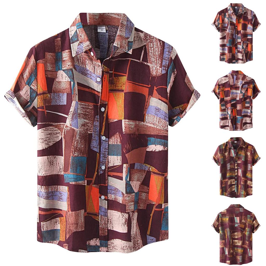 Men's Fashion Casual Print Hawaii Vacation Short-sleeved Shirt