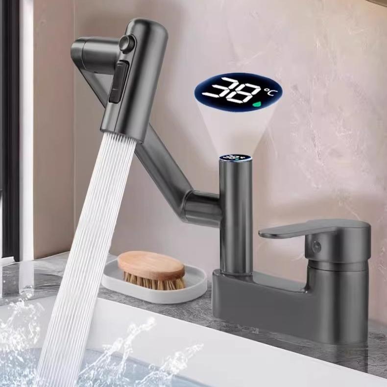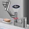 Washbasin Faucet Bathroom Multi-functional Mechanical Arm Cold and Hot Water Tap Digital Display Household Universal Rotation