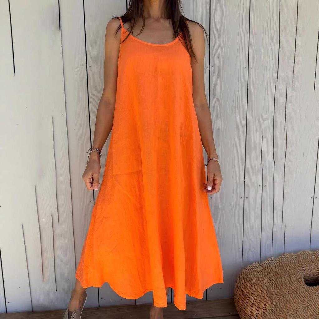 European Summer 2026 Women's Cotton Linen Strappy Dress