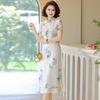 Mid-length Summer Printed Cheongsam for Middle-aged Women