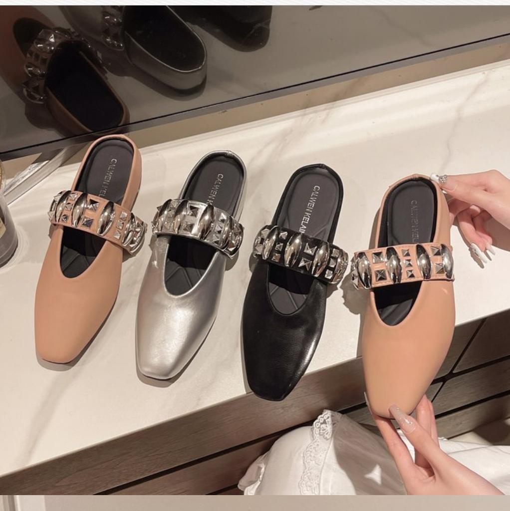 Spring Summer New Square Head Slippers Metal Buckle Thick Bottom Women Slip on Mules Shoes Fashion Korean Versatile Dress Slides