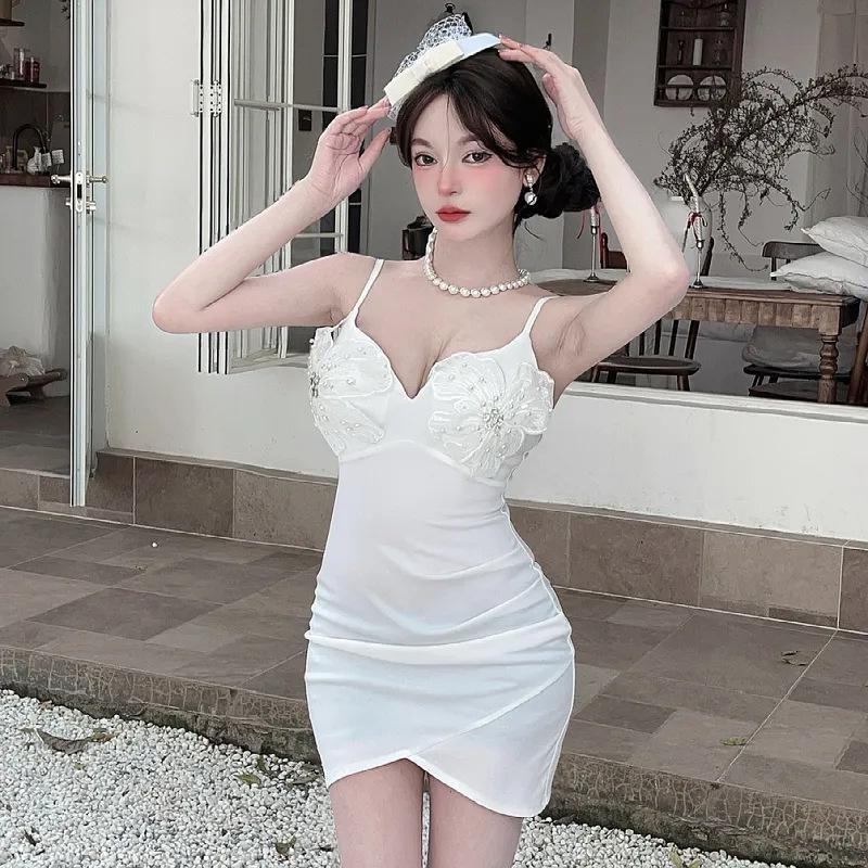 2026 Nightclub Hot Girl Low-Cut V-Neck Floral Bodycon Spaghetti Strap Dress
