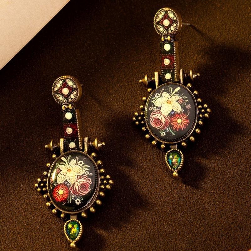 Vintage Court Style Ethnic Flower Pattern Design Flower High-End Ethnic Style Elegant Jewelry Gift