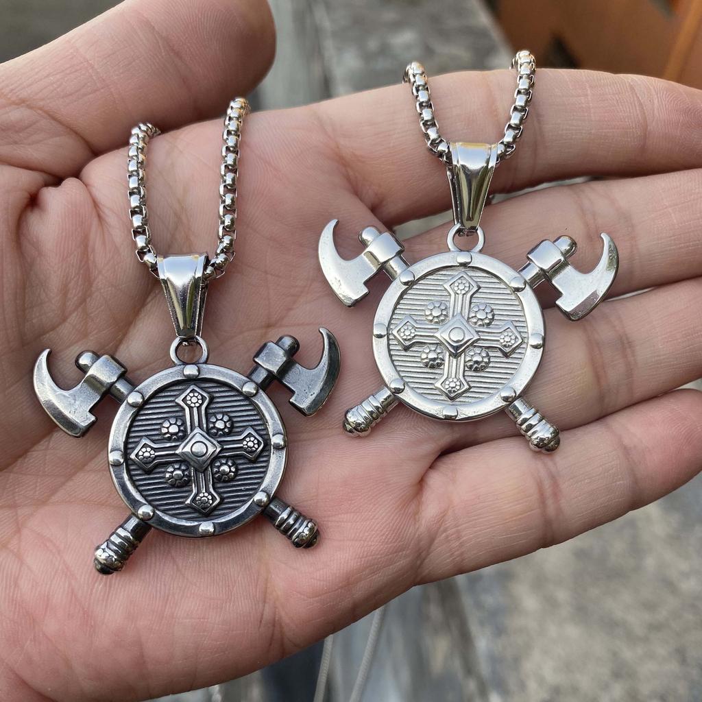 Necklace Nordic Viking Odin Logo Double Ax Pendant for Men and Women