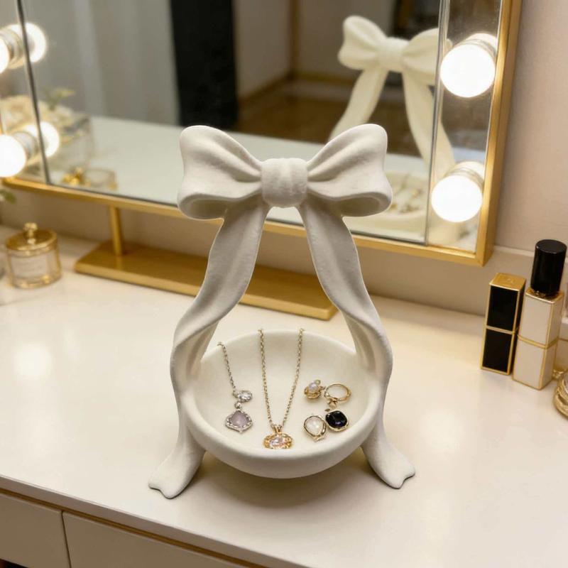 White Bow-Shaped Storage Tray, 3D Printed Bow-Shaped Jewelry Storage Tray, Home Decoration Girly Style Storage Box