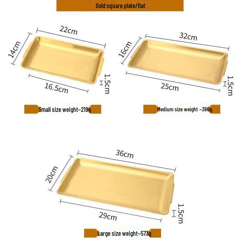 ZISIZ Korean Style Gold Stainless Steel Square Serving Tray