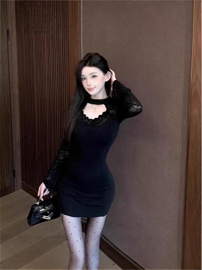 Backless Halter Long Sleeve Bodycon Dress - Sexy Hollow Out, Short Skirt for Women, Spring Autumn