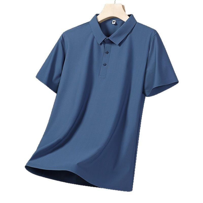Seamless Ice Silk Polo Shirt T-shirt Summer Lapel Solid Color Short-sleeved T-shirt Business