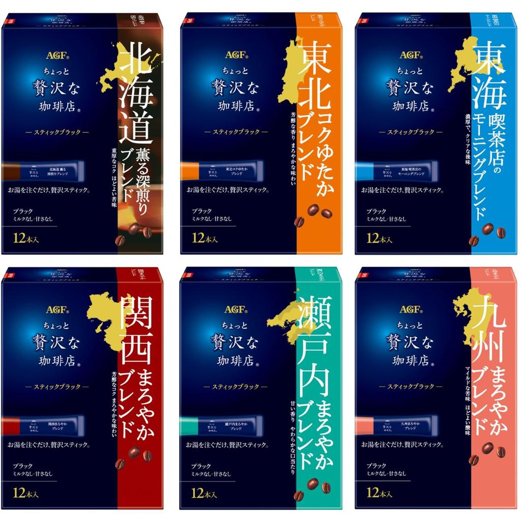 AGF Slightly Luxurious Coffee Shop Stick Black Local Blend Tasting Set Coffee for 6-Flavor (72 sticks) [Hokkaido, Tohoku, Tokai, Kansai, Setouchi,
