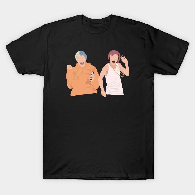 Men Black Print T-shirt Rap Duo No-Cut Transfer Paper Print Cotton Tshirt