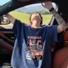 Men's Black Cartoon Monster Dollar Eye Print Oversized Short Sleeve T-Shirt Casual Streetwear Top
