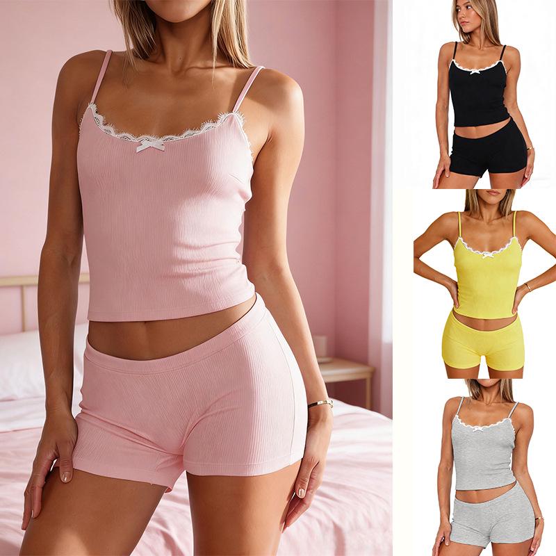 2026 Trendy European & American Women's Spaghetti Strap Sexy Two-Piece Shorts Set