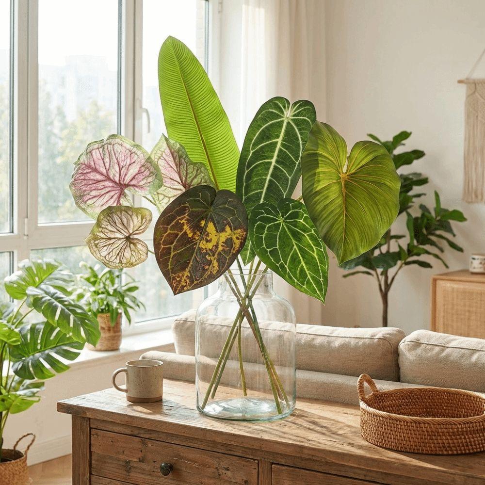 Green Plants Crane King Fern Leaf Lifelike Artificial Arrowroot Leaf Floral Arrangement