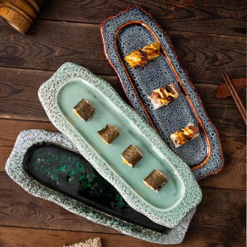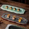 Retro Japanese-style Irregular Ceramic Long Plate Glazed Edge Sushi Snack Serving Platter Restaurant Household Ceramic Tableware