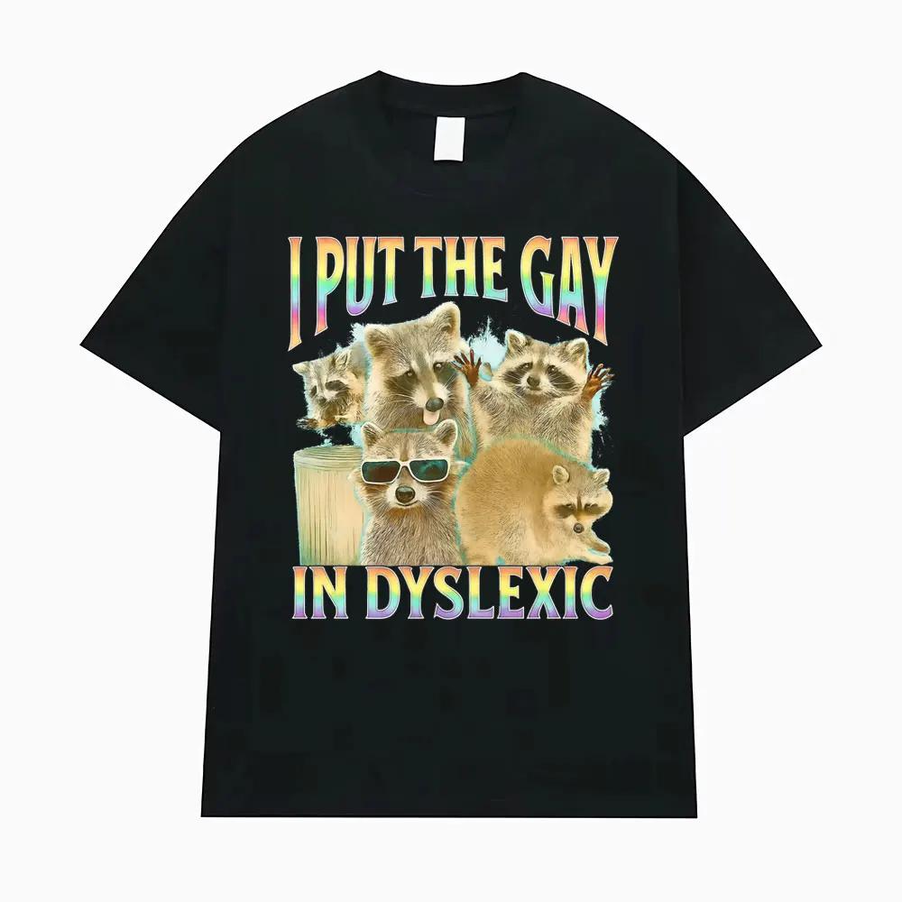 I Put The Gay in Dyslexic Funny Raccoon Meme T Shirts Men Women Short Sleeve T Shirt Casual Comfort Oversized T-shirt Streetwear