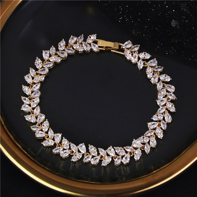 2026 European and American New Fashion Trend Accessories Women's Creative Bracelet Simple Zircon Leaf Bracelet