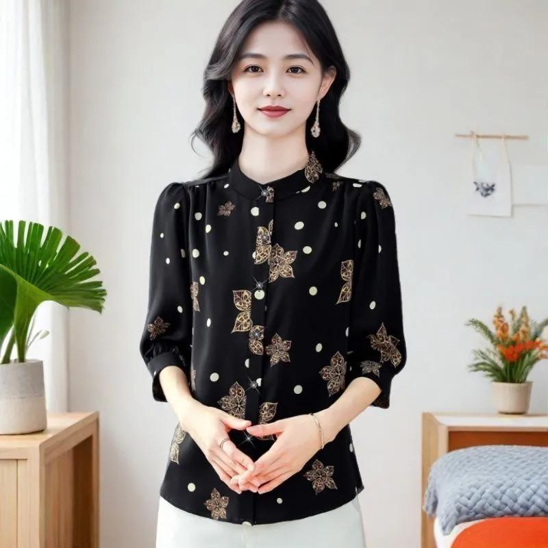 Counter Good Goods Cămășă de Mătase Hangzhou cu Mânecă Trei Sferturi Primăvară și Vară Nouă Bluză Largă Imprimată pentru Femei