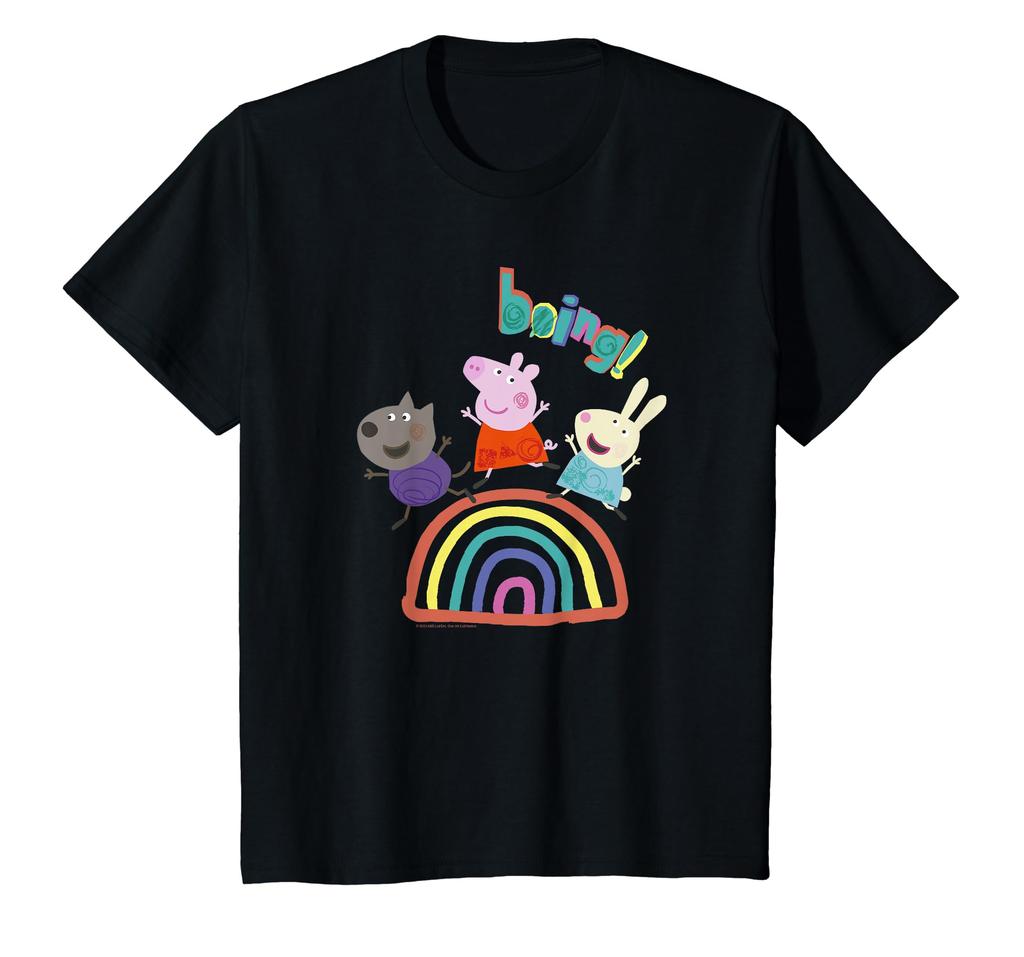 Kids Peppa Pig Friends Jumping And Having Fun Over Rainbow Boing! T-Shirt