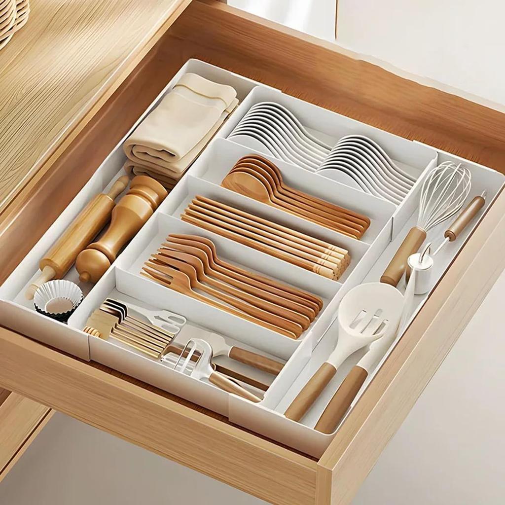 [Versatile and perfect for organizing your entire home] Use it to organize cutlery and cooking utensils in the kitchen. You can also use it to store all kinds of small items such as stationery, cosmetics, craft supplies, and tools. There's no need to measure drawer sizes, and its convenience of being able to "just buy this and it will work" will help you neatly organize clutter throughout your home.