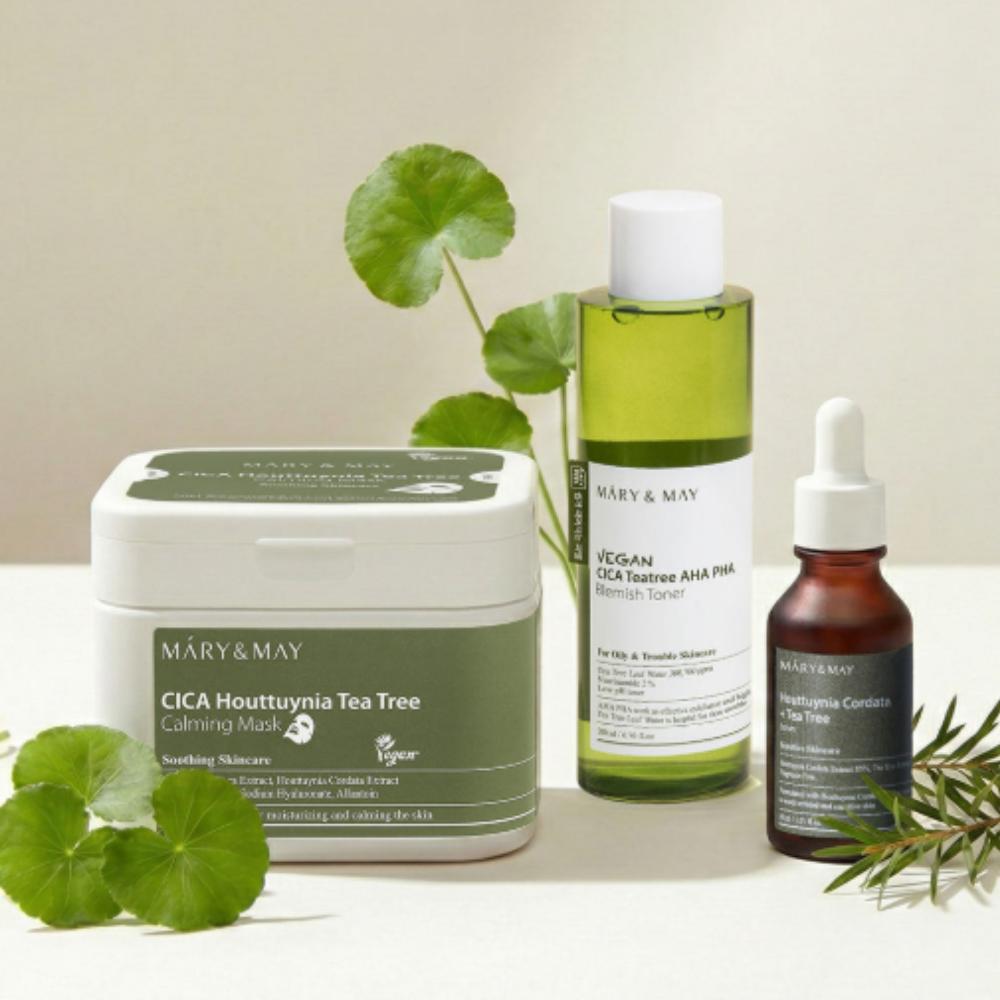 Hashtags: #MaryAndMay #VeganSkincare #TroubleCare #SoothingSet #Kbeauty #AcneProneSkin #CicaCare #TeaTreeSkincare #KoreanCosmetics #SkincareRoutine