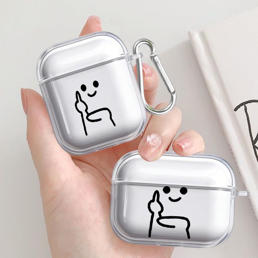 Cute Stick Figure Gestures Case For Airpods 4 Pro3 2 Pro2 3 Pro 1 Clear Earphone Cases Cover