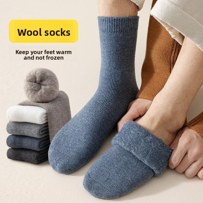 Wool Socks - Men's Thick and Warm Padded Mid-calf Socks for Autumn and Winter. Men's Woolen Socks. Long Winter Sleepers.