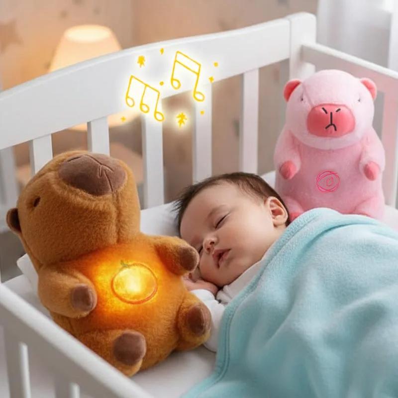 Cute Capybara Breathing Sleep Plush Toys Baby Sleep Companion Sound and Light Creative Doll Toy for Boys Girls Birthday Gift