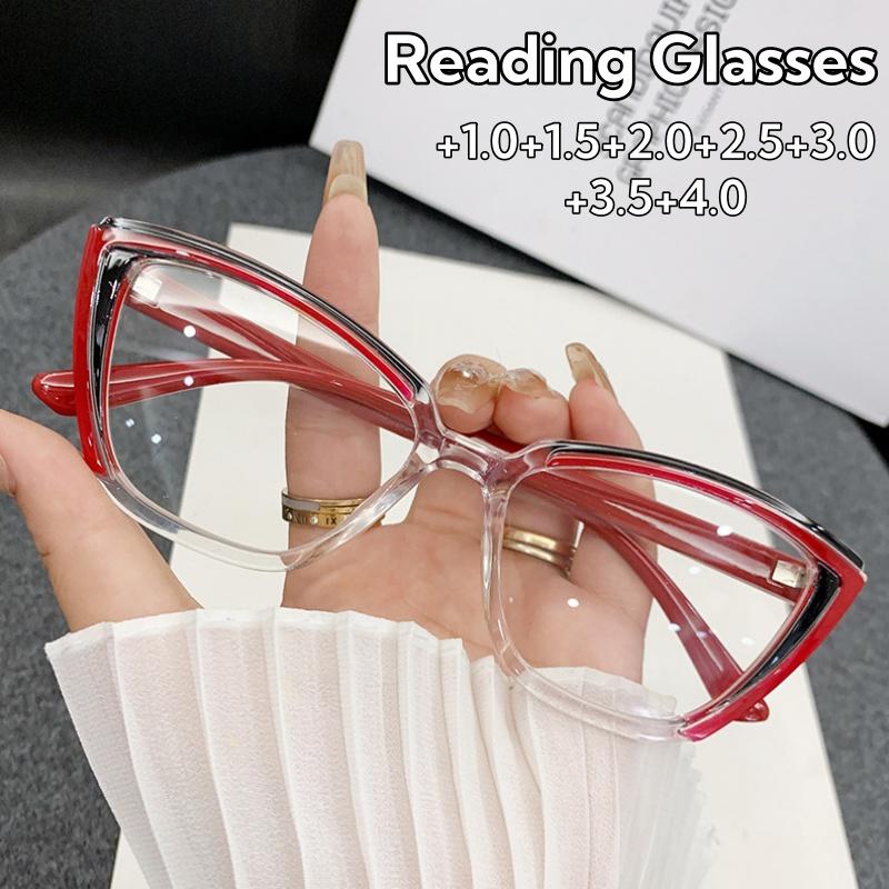 Classic Stylish Cat-eye Reading Eyeglasses Anti-Blue Light Clear Lens Presbyopia Glasses for Ladies and Men +10 To +40 +1.0 +4.0