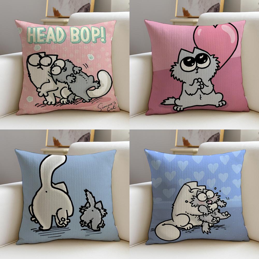 Funny SSimons CatS Cushion Cover Breathable and skinfriendly linen pillowcase square removable and washable cushion
