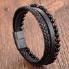 Handmade Black Obsidian Beaded Bracelet With Natural Gemstones And Leather Cord Unisex Jewelry