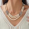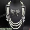 Elegant Pearl Necklace And Earring Set With Butterfly Knot Retro French Style Multi-Layer Chain Collarbone Necklace
