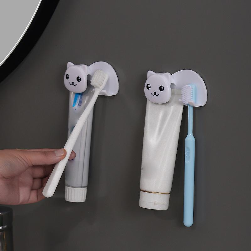 Plastic Cat Shaped Toothbrush Holder Non Perforated 2 In 1 Toothbrush Toothpaste Rack Wall Mounted Facial Cleanser Storage Clip
