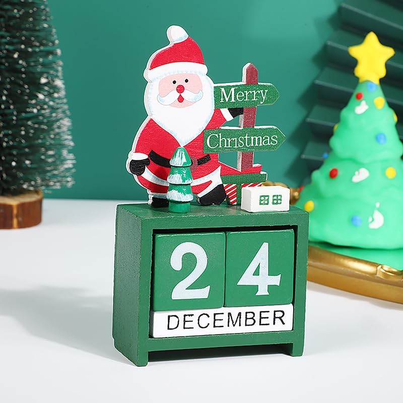 Christmas Wooden Calendar with Blocks,Santa Snowman Deer Decor for Holiday/Farmhouse/Kitchen/Table/Room, Children Toys & Gifts