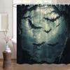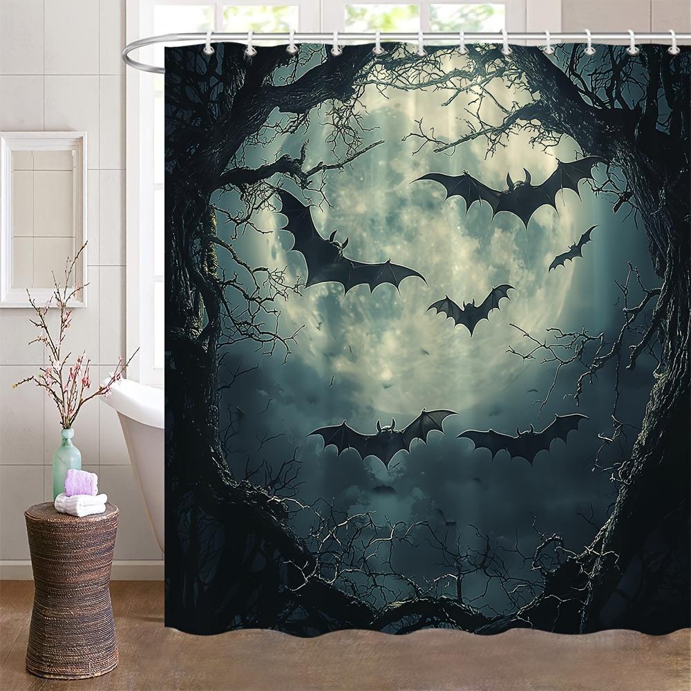 Halloween Bat Phase and Bare Trees Shower Curtain, Washable Polyester with Hooks, Black Mysterious Animal Theme Bathroom Decor