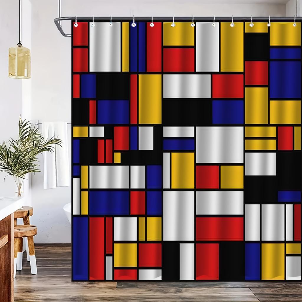 1pc Geometric Pattern Printed Shower Curtain, Suitable for Home Bathroom Decor, Easy Installation with 12 Hooks Polyester Fabr