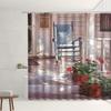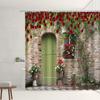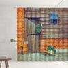 European Town Scenery Shower Curtain Set Street Flower Window Green Vine Retro Old Door And Window Pattern Bathroom Decor Screen