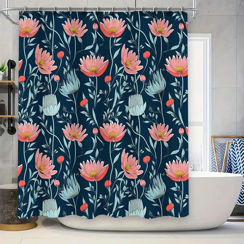 Modern Floral Print Shower Curtain Waterproof Fabric Decoration Home Bathroom Decor Custom Size Available