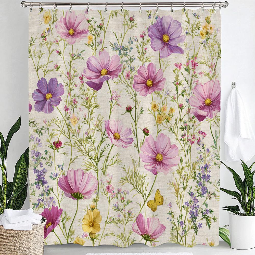 Colorful Flowers Shower Curtain for Bathroom Spring Floral Romantic Wildflower Plants Nature Scenery Decor Curtain with Hooks