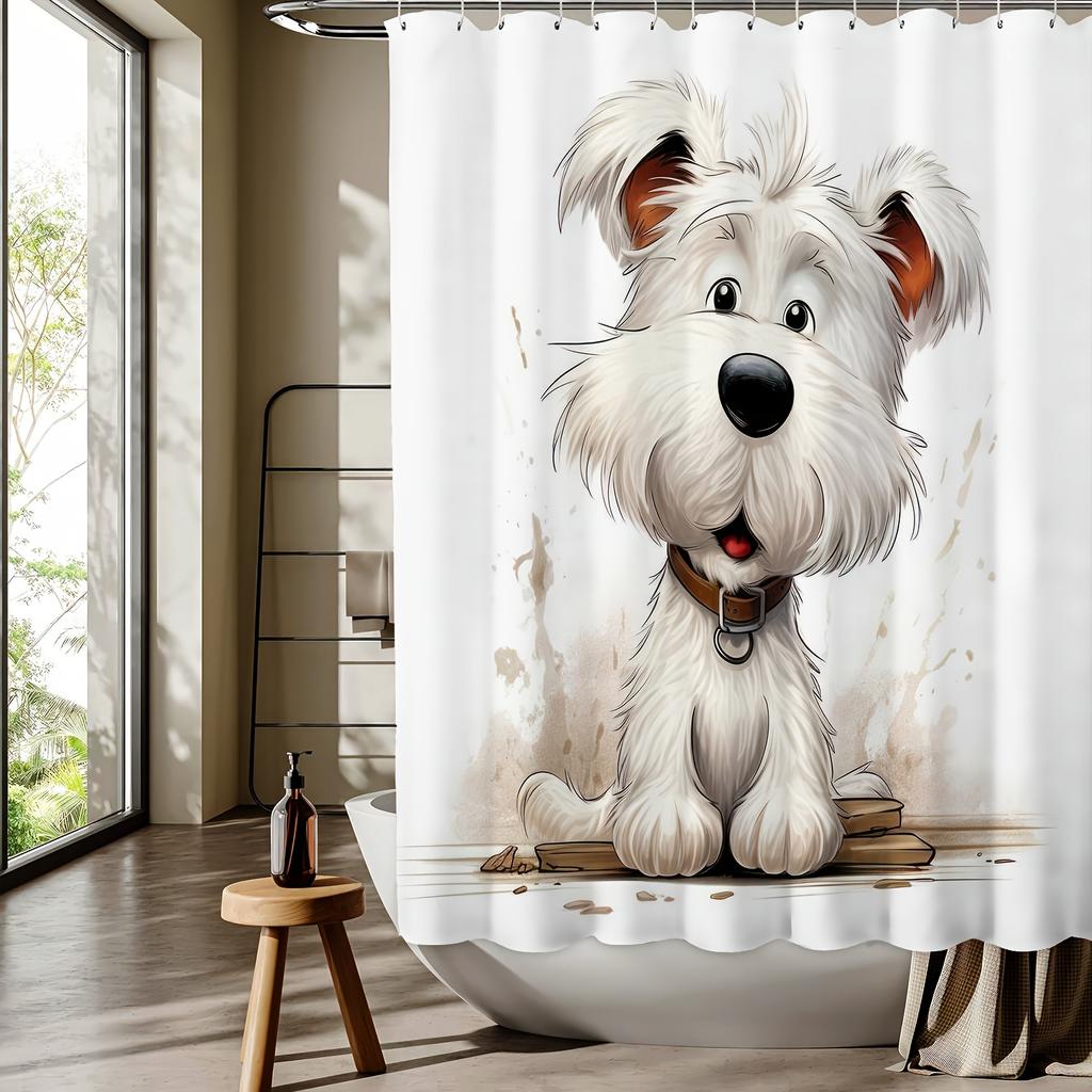 Cartoon Puppy Digital Print Shower Curtain, Bathroom Decor with Free Hooks, Machine Washable, Reversible Polyester Fabric